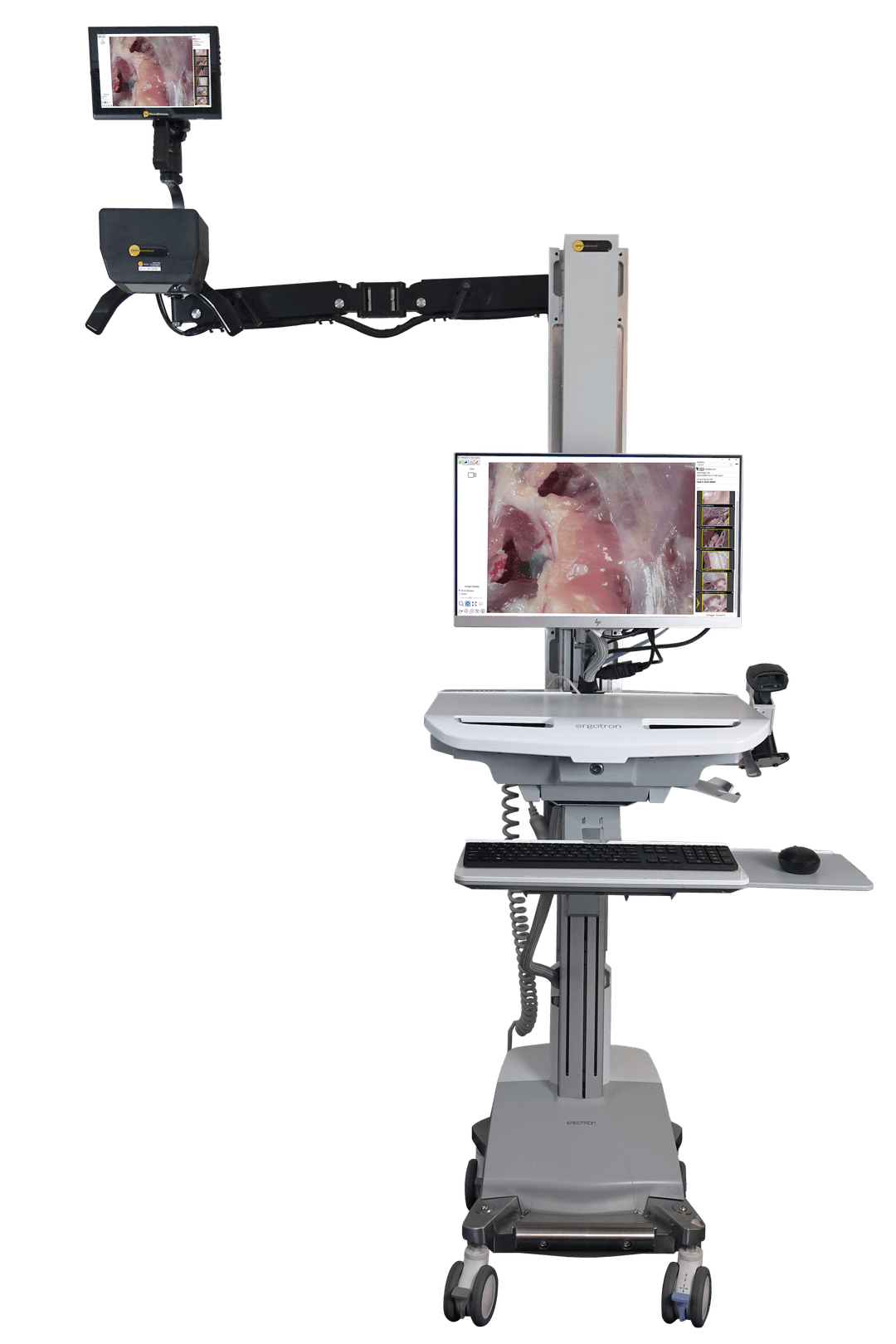 Compact workstation designed for autopsy imaging and consults.